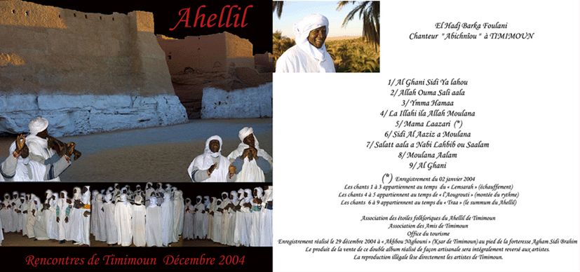 Le CD de la troupe de Timimoun avec Hadj Barka Foulani